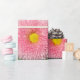 Glossy Wrapping mit rosafarbenen Blume und individuellem Hintergrund für jede Gelegenheit= Schöne Geschenkpackung.