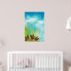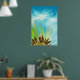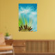 Ein großes Poster in Grün, Blau und Weiß für Zuhause und Bürodekoration. Das helle Weiß auf einem weichen Zyan macht das coole Gefühl, sich im Inneren zu entspannen. Erleuchten Sie es mit dezenten bis hellweißen diffusen Lampen.