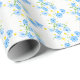 Umhüllungspapier mit hübschen blauen Blumen und weißer Blume auf weißem Hintergrund. Passen Sie dieses Objekt an oder kaufen Sie, wie es ist.