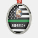 Das Militärische Ornament der dünnen grünen Linie ist eine perfekte Ergänzung zu Ihrer Weihnachtsdekoration! Zeigen Sie Ihre Unterstützung für die tapferen Männer und Frauen, die unsere Grenzen, Parks und Tierwelt schützen. Dieses moderne und schlichte Ornament besticht durch die amerikanische Flagge mit einer dünnen grünen Linie, die bundesstaatliche Strafverfolgungsbeamte, Grenzschutz, Wildwächter, Parkwächter, Naturschützer, Armee, Marine und Marineinfanteristen repräsentiert. Dieser aus hochwertigen Materialien gefertigte Schmuck ist auf Jahre hinaus ausgelegt. Halten Sie es auf Ihrem Baum, Kranz, oder irgendwo sonst, wo Sie gewollt, um Ihre Liebe für unser Land und diejenigen, die es zu zeigen. Es ist ein wohlüberlegtes Geschenk für alle, die im Militär oder im Strafvollzug sind, oder für jeden, der will, während der Ferienzeit ihre Unterstützung für diese Helden zu zeigen. Feiern Sie die Feiertage stilvoll mit dem militärischen Zierwerk der dünnen grünen Linie. Bestellen Sie noch heute Ihre und zeigen Sie stolz Ihren Patriotismus und Dankbarkeit für diejenigen, die unsere Freiheit verteidigen. COPYRIGHT © 2023 Judy Burrows, Black Dog Art - Alle Rechte vorbehalten. Dünne grüne Linie F Personalisierte Logo Army Military Metal Ornament
