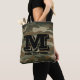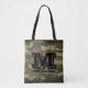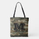 Militärische Tarnung der grünen Camouflage über die gesamte Tote Tasche. Holzschnitt-Design mit personalisiertem Monogramm-Text. Mittel und groß. Geeignete Geschenke für Freunde, Familie, Soldat etc. Doppelsiegreicher Druck mit schwarzen Griffen.