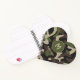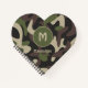 Modernes militärisches Camouflage Green Brown Monogram Muster Fun Heart Form Note Book hat ein militärisches Aussehen großartig für diejenigen, die unser Land serviert haben oder wie die Tarnung aussehen. Personalisieren Sie Ihre Eingabe und Ihren Namen.