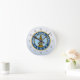 Historischer Milizsoldat mit Gewehr. Vintages militärisches Insigna-Logo der Nationalgarde der Armee in blau und gelb mit patriotischen Sternen. Genießen Sie diese Uhr in Ihrer Zuhause, im Büro oder in Kasernen.