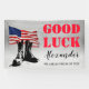 Rustikales Militärbanner mit einem rustikalen Hintergrund mit einer patriotischen amerikanischen Flagge, einem Paar von Armeefeuern, einer viel Glück-Nachricht und ihrem Namen.