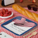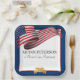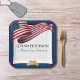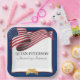 This design features beautiful fully customizable text, beautiful deep blue background and flag adorning the top, along with a golden eagle crest at the bottom, which can be fully customizable for text as well.