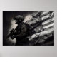 Military Smoke Ink American Flag Black & White Art Poster