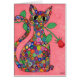 Diese schöne Katze sitzt vor einem sanften rosa Hintergrund und zeigt ihre aufwändigen, ungewöhnlichen Markierungen, ähnlich denen, die man auf Millefiori Perlen und Glas findet. In ihrem Mund hält sie eine Single-rote Rose, in diesem einzigartigen, aufregenden und hochdetaillierten Design.
