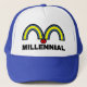 MILLENNIELLE Kappe. MILLENNIAL mm Logo. "Millennials", oder Generation Y, sind jene, die zwischen etwa 1981 und Anfang der 1990er Jahre geboren waren. Die Bögen, mm, symbolisieren den Buchstaben "M" für das Jahrtausend und die Grundlagen des m zeigen die drei Generationen, die mit ihnen existieren, Generation X (die vor den Millennials kommen), Millennials in der Mitte mit rotem Kreis, der das "Y" für "Generation Y" verkörpert, und dann Generation Z, die den Millennials folgt.