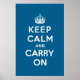 Dieses klassische "Keep Calm and Carry On" Design verbindet sich mit einem schönen, tausendjährigen blauen Hintergrund. Erhältlich als Plakat- oder Leinwand.