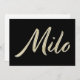 Eine personalisierte schöne und edle Karte / Grußkarte / Geschenkkarte / Geburtstagskarte im Handwriting liquid white gold Design für Milo.