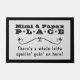 Herzlich willkommen bei Ihren Enkeln mit dieser skurrilen Türmatte mit den Worten "Mimi & Papa's Place" und "Hier ist eine ganze lotta spoilin' goin!" in moderner Typografie über einem silbergrauen Hintergrund.