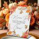 Ein elegantes Brautparty-Schild mit Rostfall-Blüte, Ahornbaum-Blätter, Eicheln und eleganter Kalligraphie.