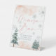 Im Winter herrlich blütendes und rosafarbenes Brautparty mit Babydusche und Pinienbäumen und Schneeflocken. Ideal für die Winterherrschaft, für die Babydusche und das Brautparty im Winter, sowie für Hochzeiten im Winter.
