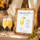 Mimosa Bar-Schild mit einer Abbildung einer Champagnerflöte, gefüllt mit einem orangefarbenen Mimosa. Fügen Sie Ihren Ereignisnamen hinzu, um ihn zu personalisieren.