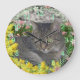 Mimosa, die Tigerkatze auf Mimosa-Blume Große Wanduhr