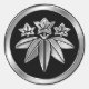 Das ist der Kamon des Minamoto-Clans, Sasa Rindo (笹 竜 胆) oder "Gentiana-Blume auf Bambus", in silberfarbenem Stil.