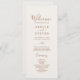 Dieses minimale Blatt Boho Sahne Hochzeitsprogramm ist perfekt für eine Hochzeit. Die Silhouette ist schlicht und besteht aus einem grünen Blatt in erdbrauner Orange auf einem cremefarbenen Hintergrund mit minimalistischem Wüstenböhmischen Stil. Geben Sie den Namen des Paares, das Hochzeitsdatum und den Ort, Dankeschön-Nachricht, Dienstorden, Hochzeitsfeier und ein optionales "in Loving Memory"-Denkmal ein.