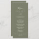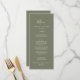 Diese minimale Blatt dunkelgrünen Abendessen und Getränke-Karte ist perfekt für eine Hochzeit. Die Silhouette ist schlicht, grün, grün, mit minimalistischem böhmischen Stil. Auf der einen Seite bietet dieses Menü das Abendmenü und auf der Rückseite das Getränkemenü. Es kann für Hochzeitsempfang, Probe-Dinner oder jede Veranstaltung genutzt werden.