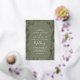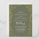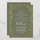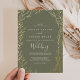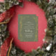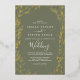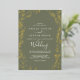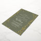 Diese minimale Blatt Goldfolie dunkelgrün Hochzeitfolie Einladungskarte ist perfekt für eine Hochzeit. Die Silhouette ist schlicht und besteht aus einem grünen Blatt in luxuriös gepresster Goldfolie auf einem Olivenhain mit minimalistischem Böhmerstil.