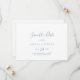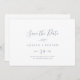 Diese minimale, blaue, waagerechte Save the Date Karte ist perfekt für eine Hochzeit. Die Silhouette ist schlicht und grün in hellblau mit klassischem minimalistischem Stil.