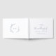 Dieses minimale Blatt staubblaue Monogramm Rücken Hochzeit Gästebuch ist perfekt für eine elegante Hochzeit. Die Silhouette ist schlicht und grün in hellblau mit klassischem minimalistischem Stil. Personalisieren Sie die Frontabdeckung mit den Namen der Braut und des Bräutigams und dem Hochzeitstag.