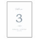 Diese minimale blaue Tischnummer ist perfekt für eine Hochzeitsfeier. Die Silhouette ist schlicht und grün in hellblau mit klassischem minimalistischem Stil. Die Karte druckt auf der Vorder- und Rückseite (beidseitig). Die Artikel werden genau so gedruckt, wie sie auf dem Bildschirm erscheinen, wenn Sie sie zum Warenkorb hinzufügen, sodass Sie jede Tischnummer, die Sie benötigen, individuell anpassen und hinzufügen können.
