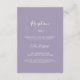 Diese minimale Blatt-Lavendel-Empfang-Umschließkarte ist perfekt für eine Hochzeit. Die Silhouette ist schlicht und besteht aus grünen Blättern in pastellfarbenen Lilien, lila mit minimalistischem böhmischen Gartenstil. Personalisieren Sie diese Detail-Gehäuse-Karte mit Ihren Empfang-Informationen und fügen Sie Ihre Website-Adresse Hochzeit auch!