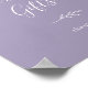 Dieses minimale Blatt Lavendel-Karten und Geschenke Poster-Zeichen ist perfekt für eine Hochzeit oder ein Brautparty. Die Silhouette ist schlicht und besteht aus grünen Blättern in pastellfarbenen Lilien, lila mit minimalistischem böhmischen Gartenstil. Die Textzeile am Ende des Zeichens kann mit dem Datum, den Namen der Braut und des Bräutigams personalisiert werden, oder mit einer kurzen Nachricht wie "Danke". Dieses Schild kann für eine Hochzeit oder für jede Veranstaltung oder jedes Party verwendet werden.
