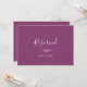 Dieses lila reservierte Schild aus Blätterbeeren ist perfekt für eine Hochzeit. Die Silhouette ist schlicht und besteht aus einem grünen Blatt in romantischer, violetter Sommerfarbe mit minimalistischem böhmischen Gartenstil. Benutzen Sie diese Karten, um Stühle oder Tische bei Ihrer Hochzeitsfeier, Empfang oder jeder Veranstaltung zu reservieren.