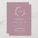 Dieses minimale Blatt-Lila alles in einer Hochzeitseinladung ist perfekt für eine Hochzeit. Die Silhouette ist schlicht und besteht aus einem grünen Blatt in einem romantischen, lila rosa Farbton mit minimalistischem böhmischen Gartenstil. Personalisieren Sie mit den ersten Initialen des Paares. Rett Papier, indem man die Details auf der Rückseite der Hochzeitseinladung statt auf einer separaten Kapselkarte angibt. Geben Sie auch die UAWG-Informationen an, ob Ihr Gast elektronisch antworten wird (optional).