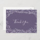 Dieses lila Blatt Pflaumenmuster ist für eine Hochzeit perfekt. Die schlichte Silhouette der grünen Blätter in dunkelblauer Veilchenform, die mit minimalistischem Boho-Stil lila ist. Personalisieren Sie die Rückseite der Postkarte mit Ihren Namen, Ihrer Rücksendeadresse und einer Danksagung. Alternativ können Sie den Bereich Dankeschön Meldungsvorlage leer verlassen werden, um eine durchdachte personalisierte Notiz auf jeder Karte nach ihrer Ankunft zu schreiben. Diese Karten können für eine Hochzeit, ein Brautparty oder eine besondere Veranstaltung verwendet werden.