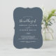 Diese minimale Blatt Tonschiefer blauen monogramm Rückseite Hochzeitseinladung ist perfekt für eine elegante Hochzeit. Die Silhouette ist schlicht und grün in dunkelgraublau mit klassischem minimalistischem Stil. Personalisieren Sie den Rücken mit den ersten Initialen der Braut und Bräutigam.