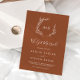 Diese minimalen Blatt Terracotta-Entdeckungskarten haben ein schönes elegantes Design. Die Silhouette ist schlicht und besteht aus einem grünen Blatt in erdbrauner Orange mit minimalistischem Wüstenböhmischen Stil. Personalisieren Sie die Karte mit Ihren Ehedetails, und verwenden Sie den Vorlagenbereich auf der Rückseite, um Informationen über den Empfang zu erhalten, eine Adressenänderung anzukündigen oder um weitere Informationen zu erhalten, die Sie gerne teilen möchten.