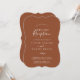 Diese minimale Blatt Terracotta Hochzeitsempfehlung lädt zu einem boho post-elopement Party ein. Die Silhouette ist schlicht und besteht aus einem grünen Blatt in erdbrauner Orange mit minimalistischem Wüstenböhmischen Stil. RSVP-Karten werden separat verkauft, oder Sie können auf der Kartenrückseite UAWG info hinzufügen.