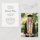Diese klassischen Einladungen zur Abschlussfeier enthalten ein individuelles Foto und traditionelle Typografie. Ihre Größe entspricht der einer Visitenkarte, was sie leicht an Freunde, Klassenkameraden und Familie zu verteilen macht oder als Beilage für Ihre Abschlussanzeigen geeignet ist. Sie können die Vorlage mit dem Bild des Absolventen, Namen, Datum, Uhrzeit, Ort und den RSVP-Angaben personalisieren. Die Einladungen sind mit einer anspruchsvollen und minimalistischen Ästhetik gestaltet und ideal für Absolventen, die zeitlosen Stil schätzen. Sie sind perfekt für Abschlussfeiern an der High School, am College oder an der Universität. Druckfarben: schwarz und weiß.