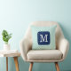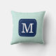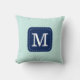 Trendy und stylish Minzblau Polka Dots Kissen mit anpassbarem Monogramm auf marineblau Banner.