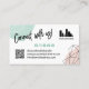Eine einseitige QR-Code-Visitenkarte für Social Media, personalisiert mit Ihrem Logo, Social Media Handles, E-Mail und Website-Adresse mit einem modernen Polygon und gepunktetem Kreisdesign in Rosa und Minzgrün.