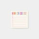 Farbenfrohe, bunte, lustige Mini Checkliste mit regenbogenfarbenem Text.