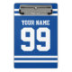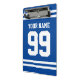 Das Mini-Clipboard ist ein Geschenk für Sportjersey Nummer. Personalisiertes Ferien- oder Geburtstagsgeschenk für Sporttrainer, Personal Trainer, Fitness-Instruktor, Freund, Mutter, Vater, Chef, Mitarbeiter, Lehrer, Büroassistent, Kinder etc. Sportliches Design mit Namen und Streifen. Blau und Weiß oder Sonderfarben. Beidseitiger Druck. Praktisch für Noten, behaltend Partitur und mehr. Verwendung in Fußball, Baseball, Basketball, Fußball, Tennis, Golf, Volleyball, Hockey, Fitness und anderen Mannschaftssportarten.