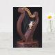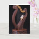 Send a note with charm and artistry—this card depicts a tiny animal climbing a polished wooden harp against a stark black background. Minimalist, elegant, and perfect for any occasion that calls for refined beauty.