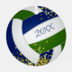 Dieser niedliche Volleyballverzierung zeigt das realistische Bild eines Volleyballs mit blauen, grünen und weißen Tafeln und einer Sprinklerei von winzigen Imitaten goldenen Glitzer Sterne, auf denen Sie den Namen des Spielers auf der Vorderseite anpassen können und das Jahr der Erinnerung an die Vergangenheit - durch katz_d_zynes