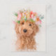 Mini Goldendoodle Dog Blume Crown Portrait Postkarte