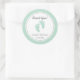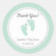 Runder Aufkleber für Babydusche mit Minz-Grün Babyfüße und Punkt Hintergrund.