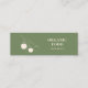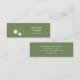 Lassen Sie Ihre Bio Marke unvergesslich mit dieser modernen Mini-Visitenkarte mit einem stilvollen grünen Hintergrund und einem minimalistischen Kirschlogo. Diese kompakte 3" x 1" Karte eignet sich ideal für kleine Unternehmen, Bauern, handgemachte Produkttags oder Öko-bewusste Unternehmer und eignet sich ideal für Verpackungen von Beilagen, Dankeschön-Noten oder Produktmarken. Passen Sie es mit Ihren Kontaktinformationen an oder speichern Sie Ihre Adresse für ein berufliches, naturlich inspiriertes Aussehen, das sauber, modern und wirkungsvoll ist.