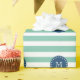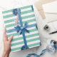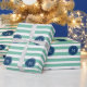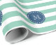 Mini Green Stripes Muster, Navy Blue Monogram Geschenkpapier