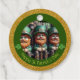Miniatur Leprechaun in 3D + "Happy St Patrick's Day" in einen grünen Kreis + Vintag St Patrick's Day Postkarte als Hintergrund mit "Danke!" hinten. Design auf dem Round-Gvor-Tag-Tag.