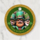Miniatur Leprechaun in 3D + "Happy St Patrick's Day" in einen grünen Kreis + Vintag St Patrick's Day Postkarte als Hintergrund mit "Danke!" hinten. Design auf dem Round-Gvor-Tag-Tag.