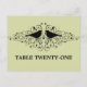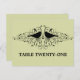 Sweet und schlicht Love Bird Wirbel Tischnummer Postcard mit Silhouetten eines Paares von whimsical Vögeln und Kaskaden von eleganten schwingenden Schnörkeln auf einem minzgrünen Hintergrund. Diese moderne Tischnummer ist leicht mit der entsprechenden Tischnummer(en) anzupassen. Klicken Sie auf "Anpassen", um weitere Personalisierungsoptionen zu erhalten.