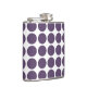 Niedliche und trendige Mini Polka Dots Flask. Dieses Design zeichnet sich durch kleine Kreispolka Punkte in lila und weiß aus. Text kann diesem Design hinzugefügt werden, um ihm eine persönliche Touch zu geben.