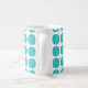 Niedliche und trendige Mini Polka Dots Tasse. Dieses Design zeichnet sich durch kleine Kreispolka Punkte in Türkis und Weiß aus. Text kann diesem Design hinzugefügt werden, um ihm eine persönliche Touch zu geben.